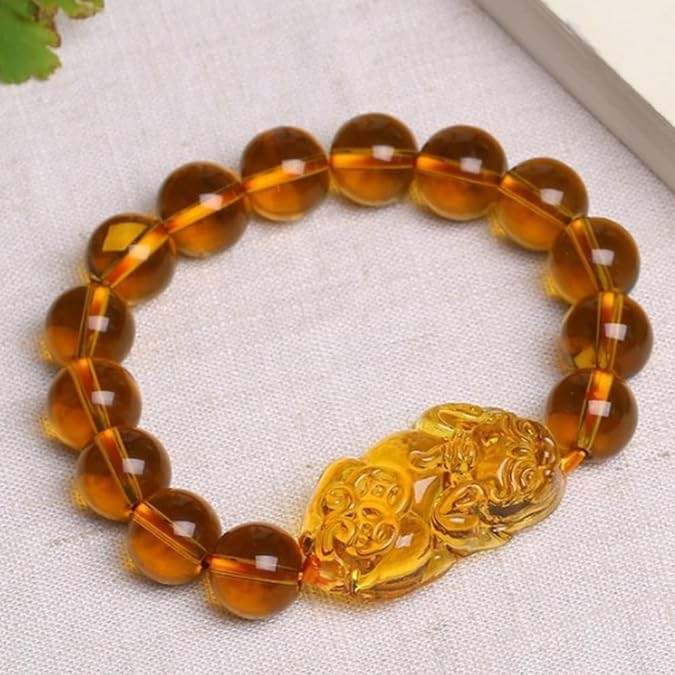 10mm Yellow Crystal Bracelet Men Women Pixiu Bracelet Jewelry