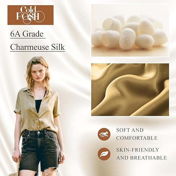 COLD POSH Women Silk Blouse Short Sleeve Blouses