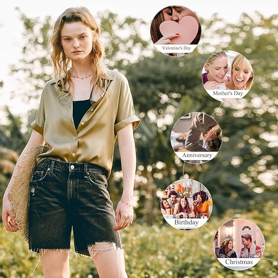 Womens Silk Blouse Flowy Smooth Shirts Casual Cute Summer Dressy Comfy Tops