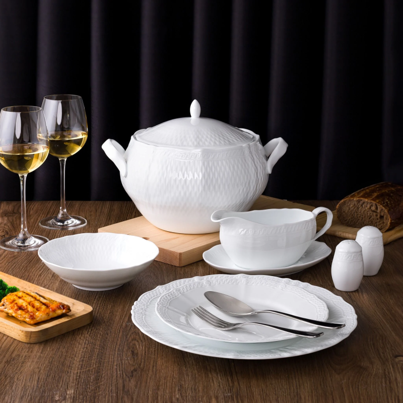 22-piece European-style dinnerware set (round plate, for 6 people) high-quality white porcelain | Cher Blanc 1655L - D024ET
