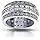 With diamonds set all the way around the ring, this eternity style features three rows of beautiful diamonds. The diamonds on the side are round and secured with a prong setting. The middle row has large size princess cut diamonds in a channel setting, with the two outer rows containing a smaller size diamond.