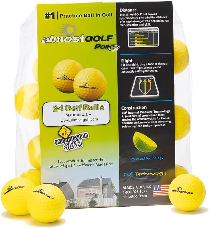 almostGOLF practice golf balls allow you to safely practice anytime, anywhere by combining tour quality flight characteristics (trajectory and spin) with safety unmatched by any other practice ball on the market.