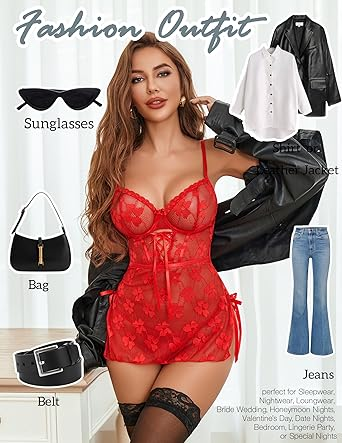 Avidlove Lingerie for Women Lace Babydoll Mesh Chemise Nightgown Side Slit Nightwear S-XXL