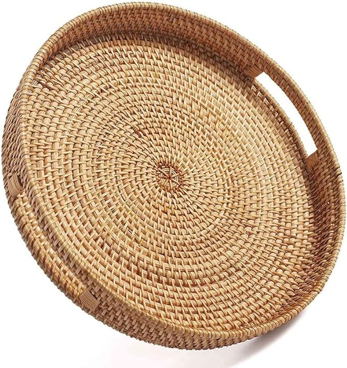 The edge is smooth and raised without burr. Compact and lightweight design, can be moved at any time, easy to carry. built in handles for easy carrying and serving simple but design for decoration, fits most home The rattan tray is very easy to clean, just need wipe clean with damp cloth