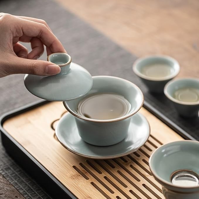 Ruyao Travel Tea Set Outdoor Portable Tea Pot. Water flows out like a pillar, but when it stops, it is swift and efficient. 304 stainless steel filter screen, with and dense filter holes to block tea , making it easy to brew tea. The shape is round and elegant, making it comfortable to hold. Melamine water storage tea tray with hollowed out surface technology for easy drainage. Material: Porcelain Packaging: Tea set * 1 (excluding other display products) Features: Transparent and round, thickened and durable, with a warm and smooth feel, deeply loved by tea enthusiasts Notes: Due to differences in display and lighting effects, the actual color of the product may slightly differ from the color shown in the picture. Thank you! Due to manual measurement, please allow a deviation of 1-2 centimeters.