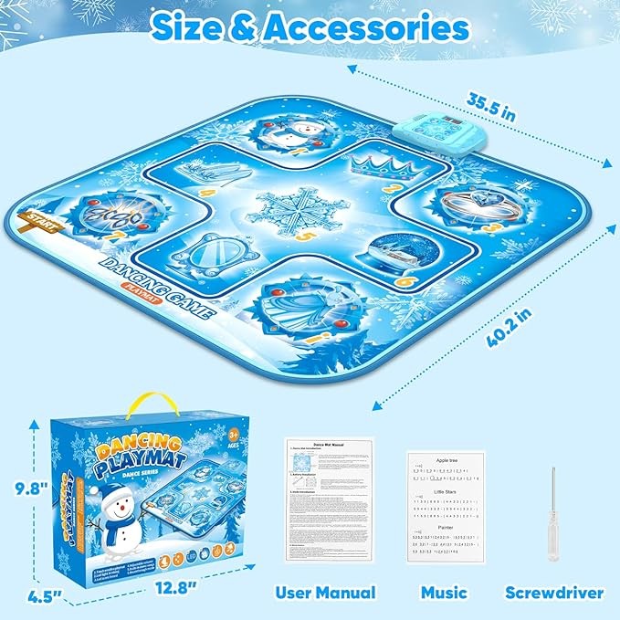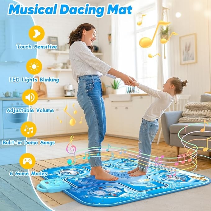 This dance mat is featured with upgrade 6 game modes, mode 1-3 is dancing challenge mode, which mainly exercise kids movement and hand-foot coordination ability, the challenge difficulty increase from mode 1 to mode 3.