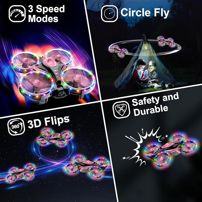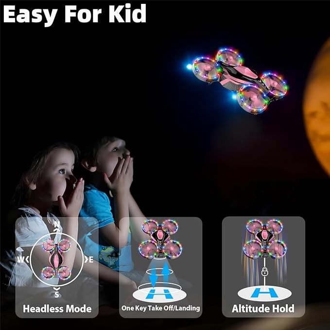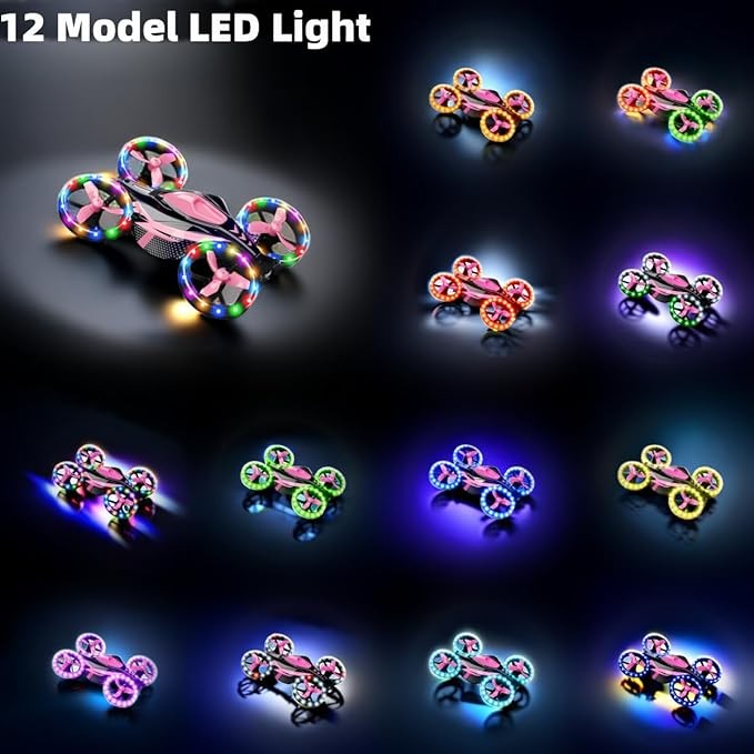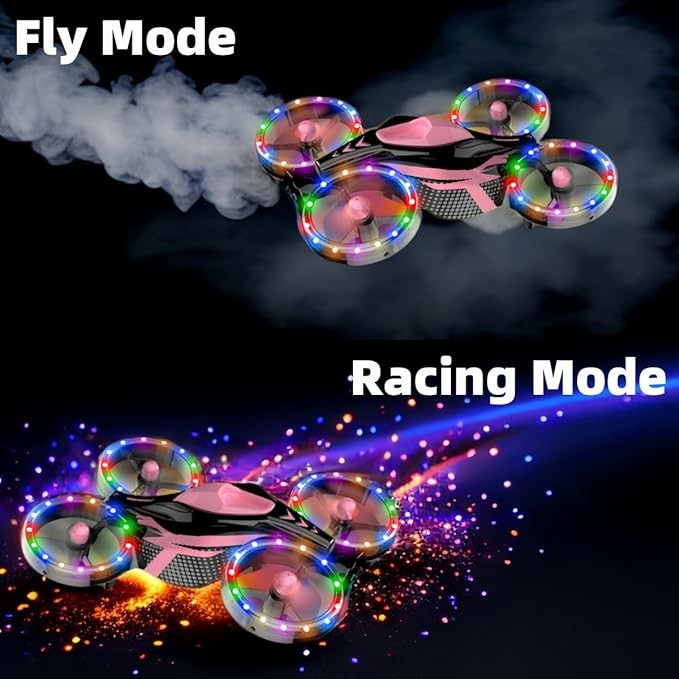 Drones for Kids - Toys for Boys Girls Perfect Christmas and Birthday Gifts - Dual Mode for Land and Fly Match LED Flash Lights wheels with 12 Scene Modes (Pink Topaz)
