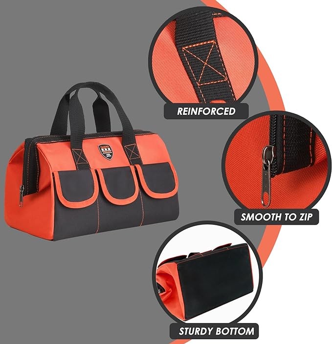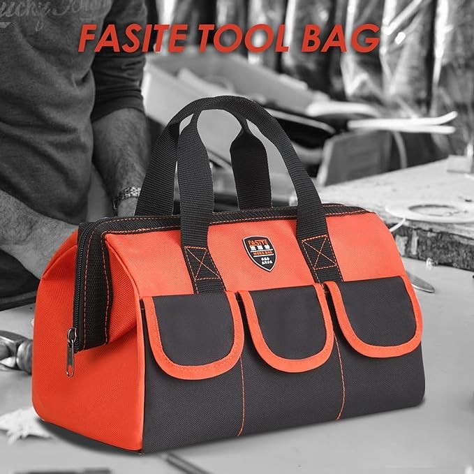 FASITE 12 in small tool bags for men, waterproof tool tote tool bags for electricians, canvas tool bag with wide mouth tool bag(2Pack)