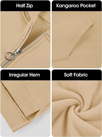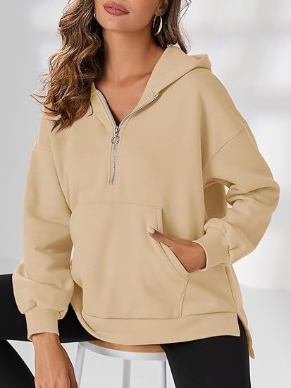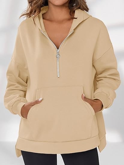 Fisoew Womens Oversized Half Zip Hoodies Long Sleeve Casual Sweatshirts Fall Pullovers with Pockets