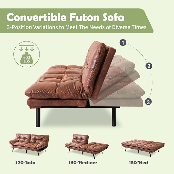 Futon Sofa Bed,Brown Futon Couch Small Lounger Sofa Foldable Loveseat with Armrests for Compact Living Spaces,Apartment,Dorm,Studio,Guest Room,Home Office