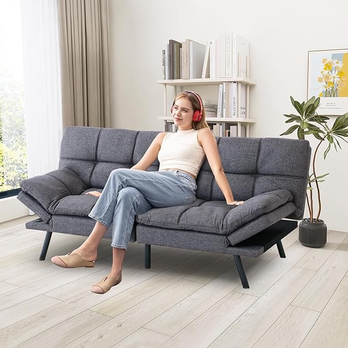 The couch is great, very easy to assemble, comfy so sit and lay on, but probably not for too many nights in a row since it’s not THAT soft, very firm. My only takeaway is when I align the seats up they are not “even” or aligned at all, one cushion is lifted just an inch barely more than the other side and as minuscule as this is, it was a bother , probably a slip up in the construction of it… other than that I did also have an issue with a screw not going all the way in because of something blocking it (which looked like fabric from the couch)