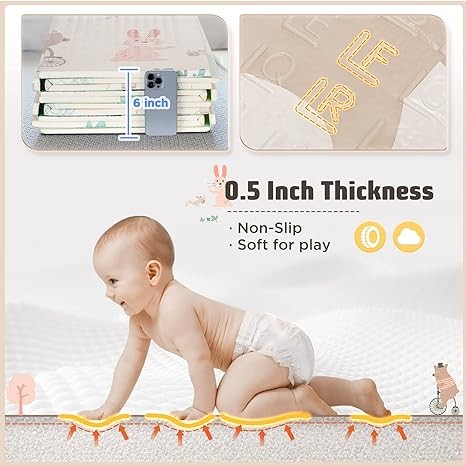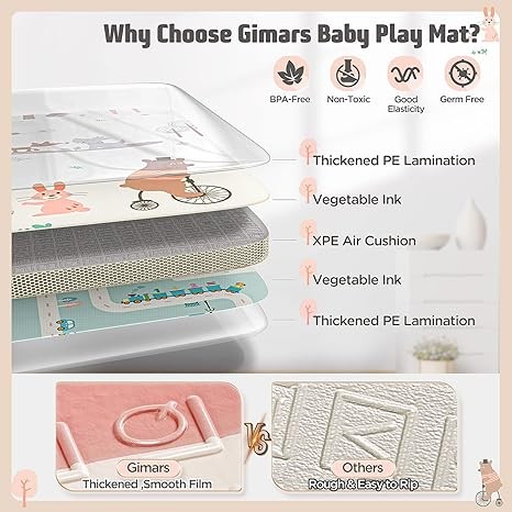 Gimars XL BPA Free 0.5 in Reversible Foldable Baby PlayMat, Waterproof Foam Floor Baby Crawling Mat, Portable Baby Playmat for Infants, Toddler, Kids, Indoor Outdoor Use (79 x71x0.5inch)