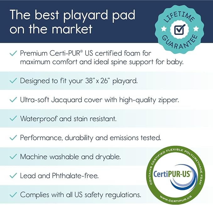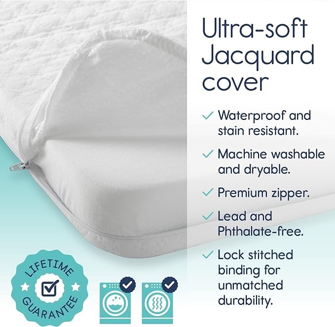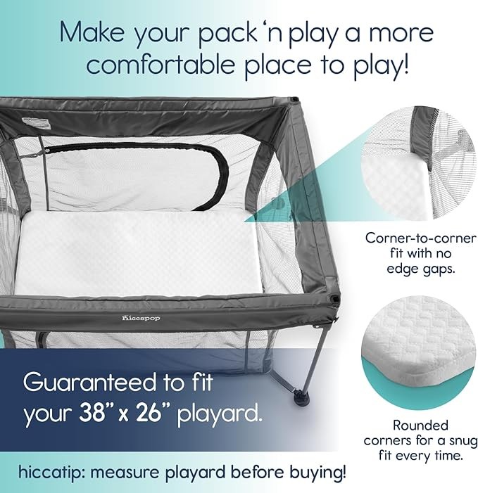 hiccapop Pack and Play Mattress Pad fits (38"x26"x1.5"), Playard Mattress for Pack and Play, Pack N Play Mattress Topper with Washable Cover, New 1.5" Thick