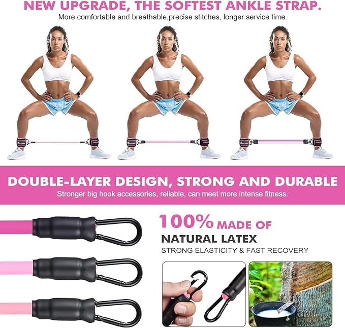 HOXWC Ankle Resistance Bands with Cuffs, Ankle Bands for Working Out, Ankle Resistance Band for Leg, Booty Workout Equipment for Kickbacks Hip Fitness Training, Exercise Bands for Butt Lift Women