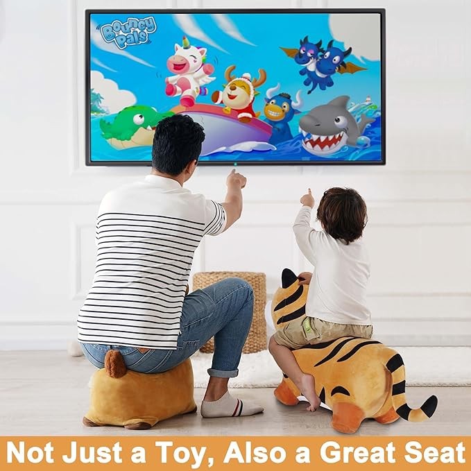 iPlay, iLearn Bouncy Pals Tiger Hopper Toy, Toddler Hopping Horse, Kid Plush Ride on Animal Bouncer W/Pump, Inflatable Bouncing Rider, Indoor Outdoor Jumping Birthday Gift 2 3 4 5 6 Year Old Boy Girl