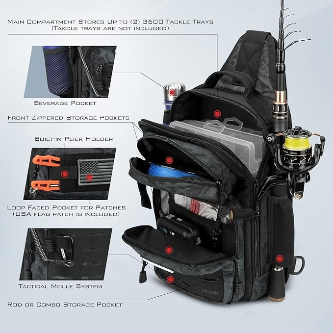 KastKing BlowBak Tactical Fishing Sling Tackle Storage Bag & KastKing Kestrel Fishing Rod