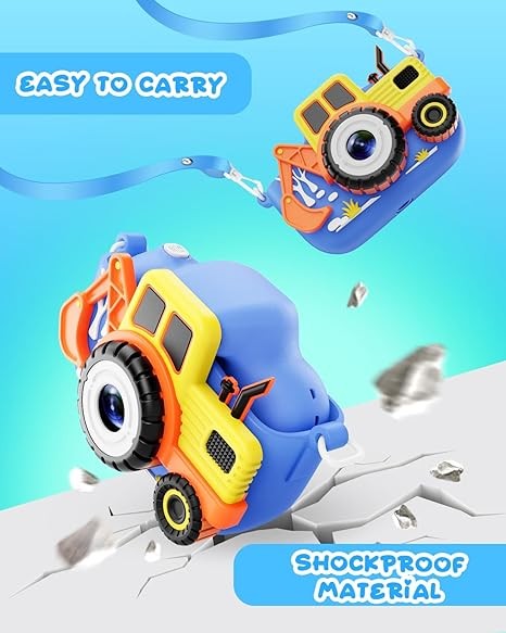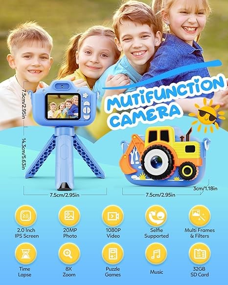 Kids Camera for Boys, Toddler Camera Christmas Birthday Toys Gifts for 3-8 Years Old Boys Girls, 1080P HD Kids Selfie Digital Camera with 32G SD Card - Excavator