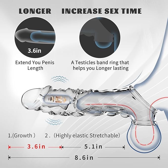 KVEVU Reusable Penis Sleeve with Vibrator Penis Ring,3.6 inch Clear Penis Sleeve Cock Ring Extender Ultra-Soft Penis Enlarger for Couples Vibrating Dildo for Cock Enlarger Sex Toys for Men