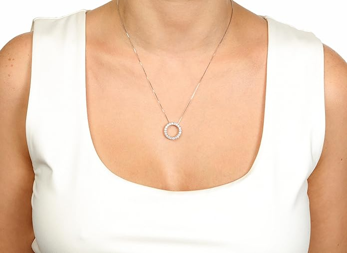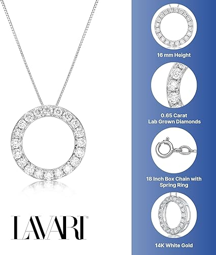 Lavari Jewelers 2/3 to 1 Carat Lab Grown Diamond Circle of Life Pendant Necklace for Women - 14k White Gold Pendant - 18 Inch Long Chain Necklace (G-H, SI1-SI2, I1-I2, 0.65 to 1 cttw) Spring Ring