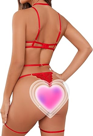 Lilosy Sexy Choker Floral Lace Underwire Push Up Garter Belt Lingerie Set for Women Sheer Bra and Panty 3 Piece