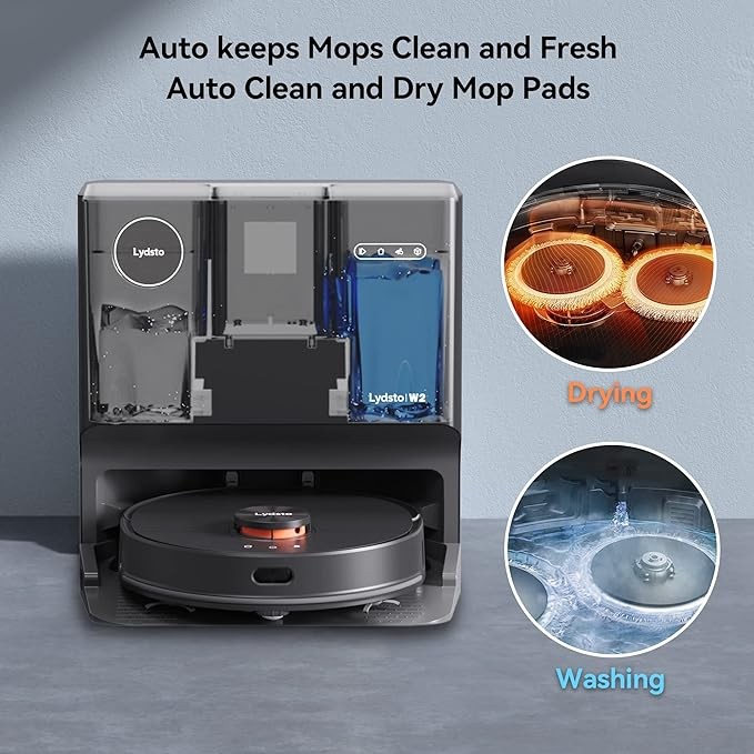 Lydsto W2 Robot Vacuum and Mop Combo, Auto Mop Cleaning and Drying,Self Refilling, Self Emptying,Robotic Vacuums with 5000Pa Suction, LDS2.0 Radar, Obstacle Avoidance, LED Display, WiFi, App Control