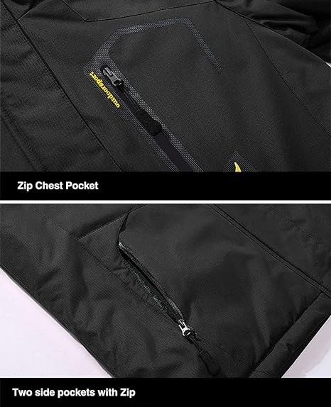 Fully crafted of water resistant, windproof, breathable fabric, with thick Fleece Lined. Featured detachable hood and 4 utility pockets