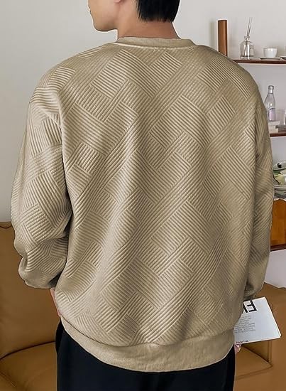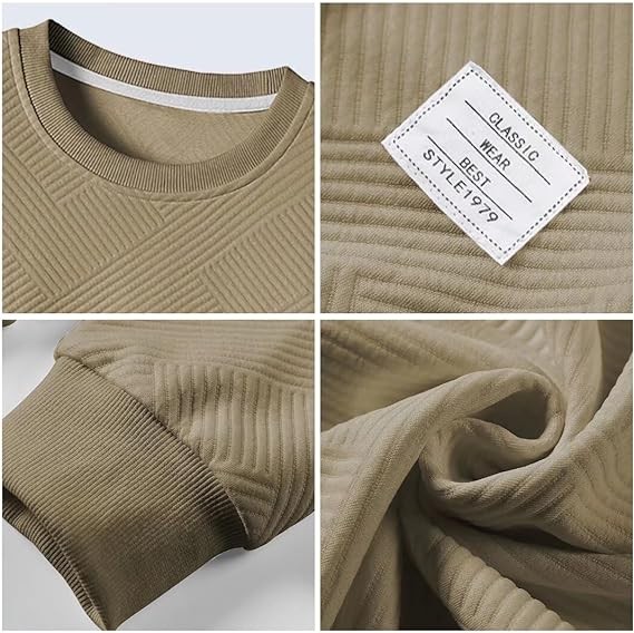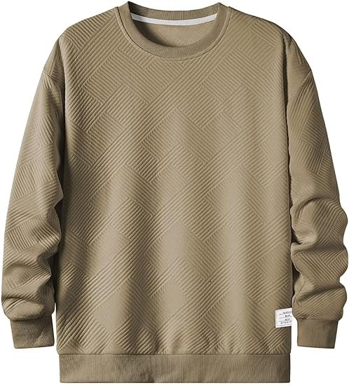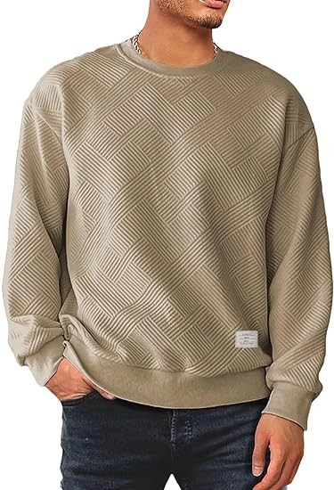Men's Crewneck Sweatshirts Soild Color Geometric Texture Long Sleeve Casual Pullover Shirt