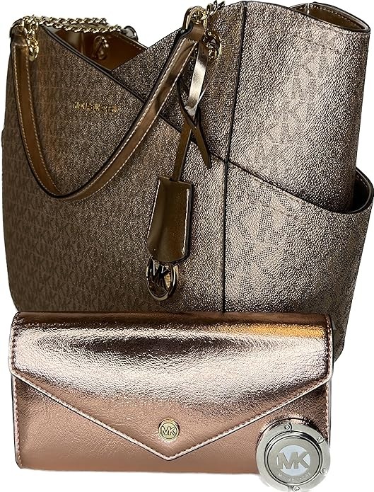 Michael Kors MICHAEL Michael Kors Jet Set Travel Large Chain Shoulder Tote bundled Jet Set Travel Trifold Wallet