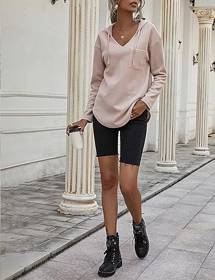 Hoodies for Women: V neck sweatshirt, long sleeve shirt, drawstring hooded tops are crafted with cotton blend polyester, comfy, breathable, and light weight; V neck hoodie sweater features classic cuts and loose fitting design to fit your body comfortably, creating casual shirt style for women in daily