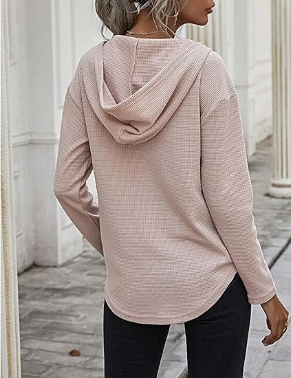 morhuduck Women's V Neck Hoodies Long Sleeve Sweatshirt Drawstring Pullover Tops with Pocket