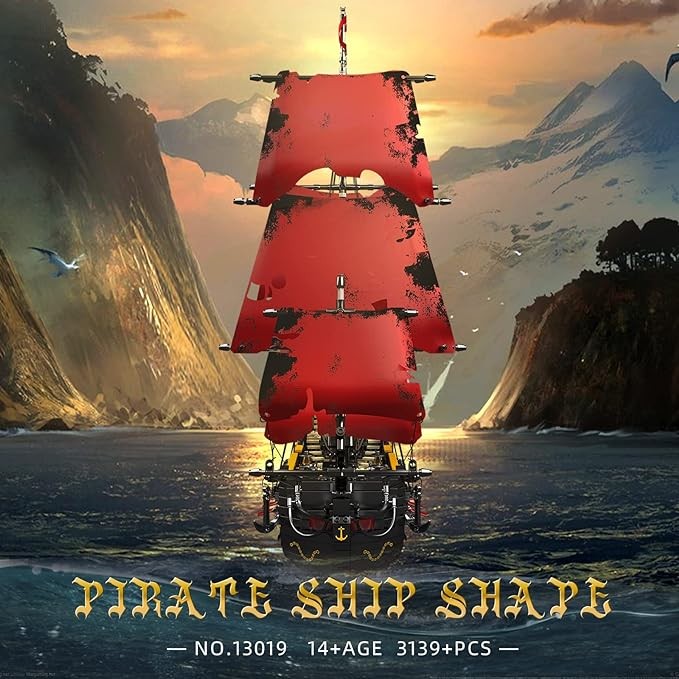 Mould King 13109 Queen Anna's Revenge Pirate Ship Model Building Blocks Kit, MOC Pirate Ship Building Sets, 3139 Pieces Large Red Set for Kids and Teens