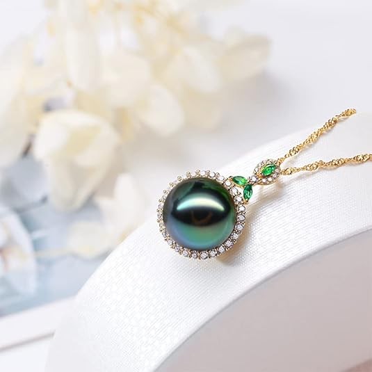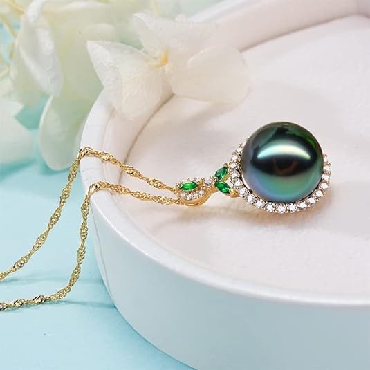 Nonnyl Gifts for Women- Tahitian-Black-Pearl-Necklace for Women, 12-13mm Real South Sea Pearls Pendant Sterling Silver Plated 18K Gold With Urquoise- Christmas Mothers Day Valentine's Day Jewelry