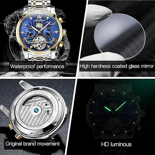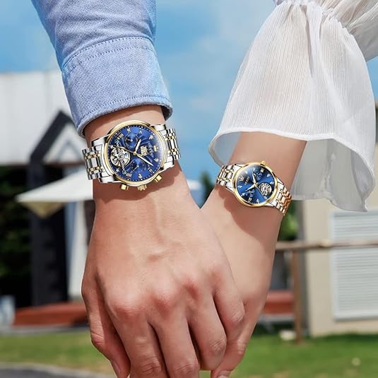 OLEVS Couple Pair Watches Set Automatic Mechanical Self Winding Dress Matching Watch for His and Hers Valentines Day Gifts