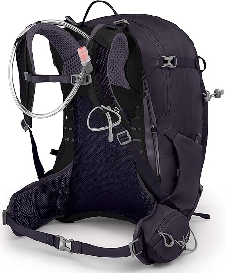 Osprey Hydraulics LT 2.5L reservoir stores in a dedicated compartment and includes a magnetic sternum strap bite valve to keep you hydrated all day long.