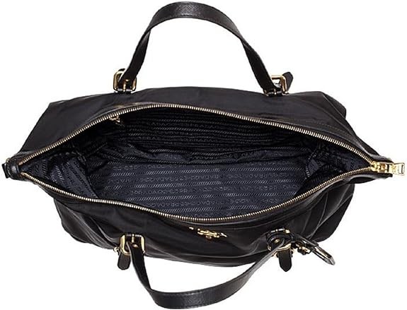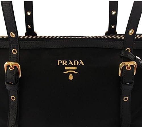 Prada Tessuto Black Nylon Leather Trim Shopping Tote Handbag 1BG253