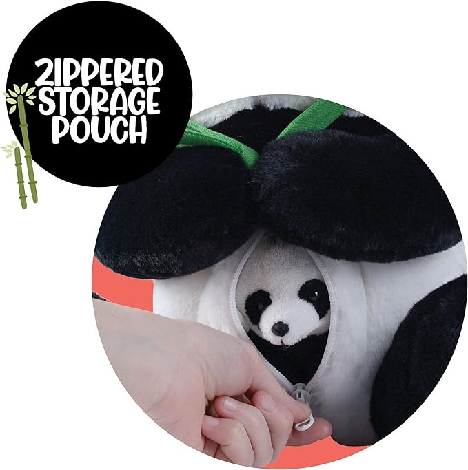 Prextex 13" Plush Panda Bear Zippered Carrier & 3 Cubs Plushies | Soft Panda Bear Stuffed Animal, Panda Plush Toy, Stuffed Panda Toys, Kid Toy, Pillow | Birthday Gifts, Panda Gifts for Girls&Boys