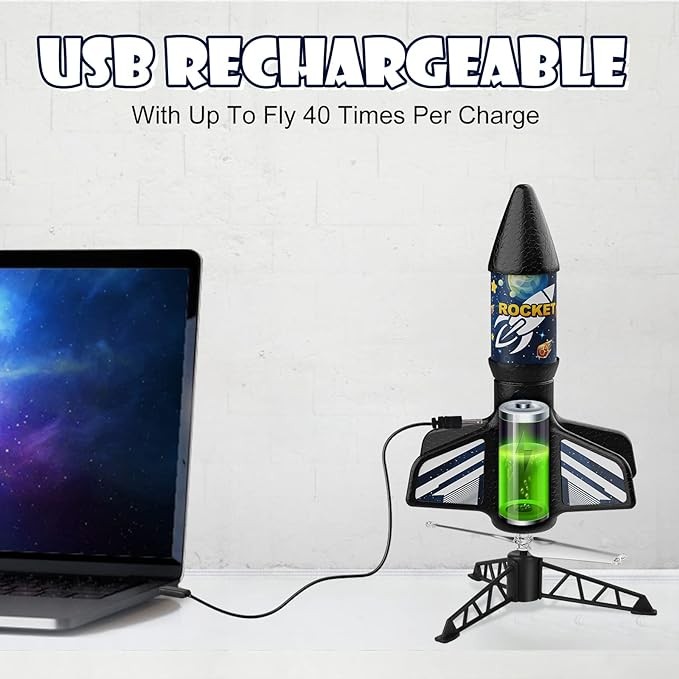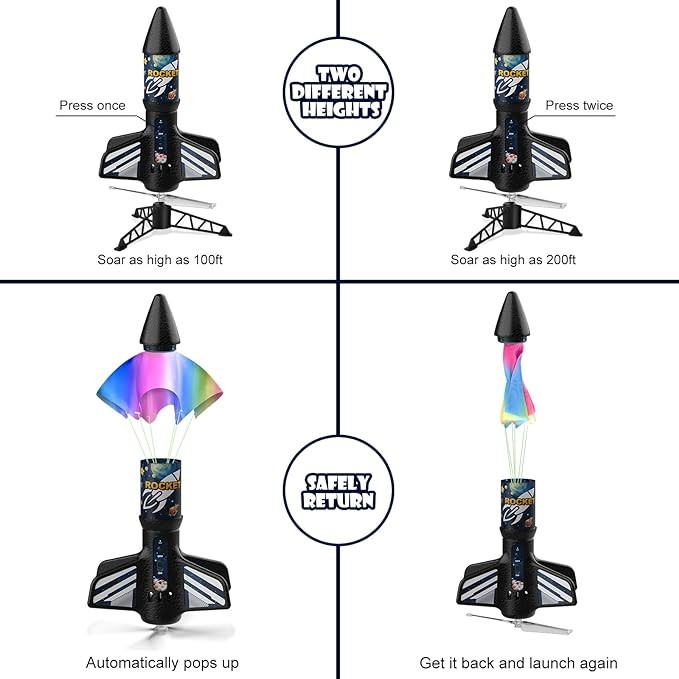 Rocket Launcher for Kids, Self-Launching Motorized Air Rocket Toy, Outdoor Toys for Ages 8-12, Model Rockets with Parachute Safely Land, Launch up to 200 ft Birthday Gifts for Boys