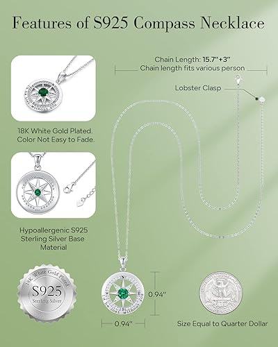 S925 Necklace Gift for Wife, Compass Jewelry Women Wedding Anniversary, Sterling Silver Girlfriend Birthday Gifts for Her, Girls Necklaces for Daughter Valentines Day Mom Mothers Day, I'd be Lost with