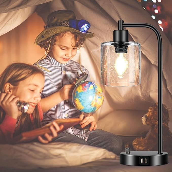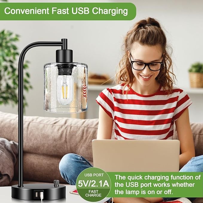 | Specific Uses For Product | ✅2 Energy saving bulbs Included ✅Material: Thick Seeded Glass & heavy-duty base✅ Dual USB ports ✅Soft warm light ✅No worry purchase |