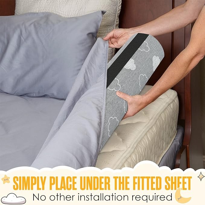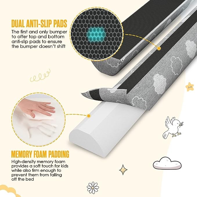 Sleepah Bed Rail for Toddlers Memory Foam Bed Bumper Guard w Dual Non-Slip Pads (Top & Bottom) is Waterproof Washable Soft Removable Cover for Kids, Adults & Seniors (1)