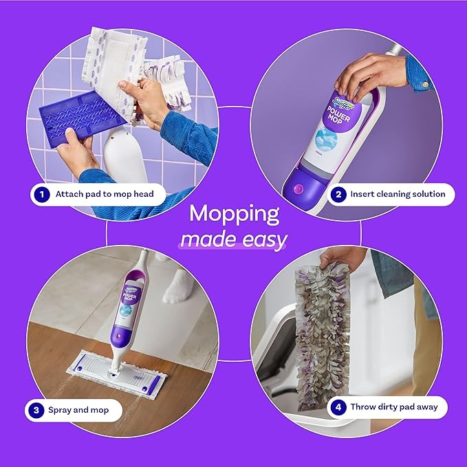 Swiffer PowerMop Multi-Surface Mop Kit for Floor Cleaning, Fresh Scent, Mopping Kit Includes PowerMop, 2 Mopping Pad Refills, 1 Floor Cleaning Solution with Fresh Scent and 2 Batteries