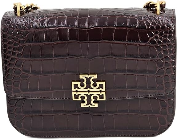 Tory Burch 141029 Britten Embossed Pumpernickel Brown With Gold Hardware Women's Small Adjustable Shoulder Bag