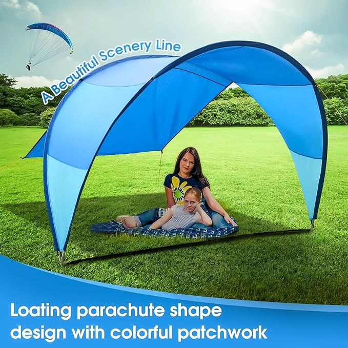 Upgrade - Patented design beach tent 10.5' x 11.5', suitable for 4-6 adults, awning rainbow sunshade, outdoor sunshade, suitable for camping, backyard, picnic - suitable for sand, grass... (Blue M) Br