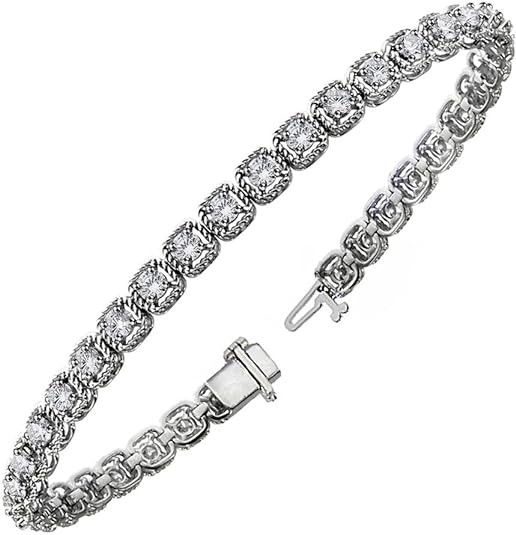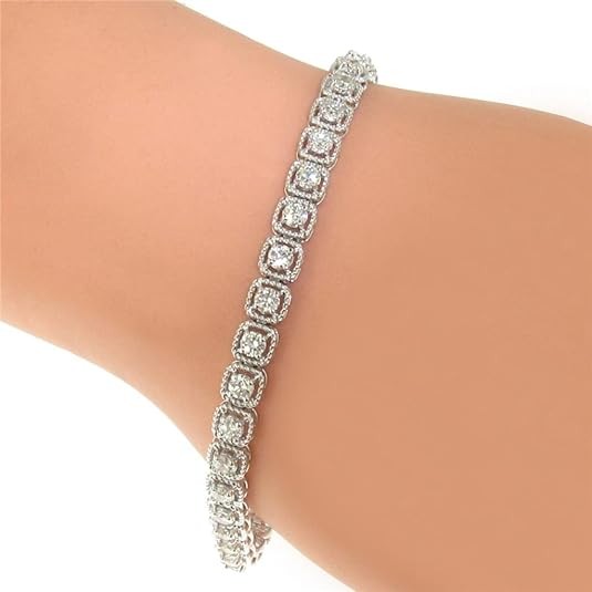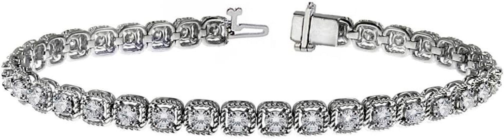VIP Jewelry Art White Gold Womens Halo Diamond Tennis Bracelet 3 CT TW (G-H Color, SI Clarity)