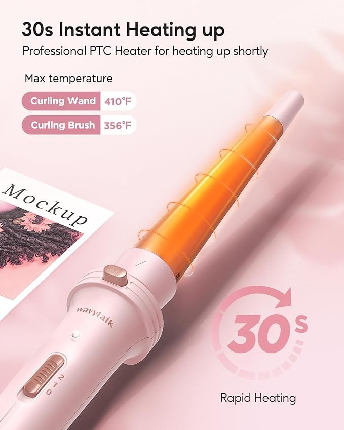 Wavytalk 5 in 1 Curling Iron,Curling Wand Set with Curling Brush and 4 Interchangeable Ceramic Curling Wand(0.5”-1.25”),Instant Heat Up,Include Heat Protective Glove & 2 Clips (Pink)
