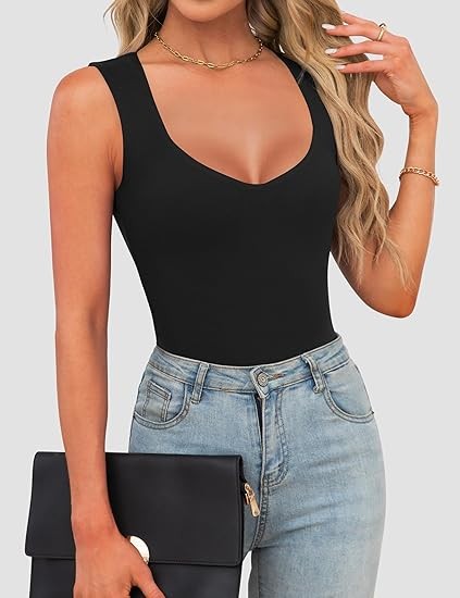 Classic Vneck tight basic tank top, stretchy sleeveless shirt can accentuate all ladies best figure.