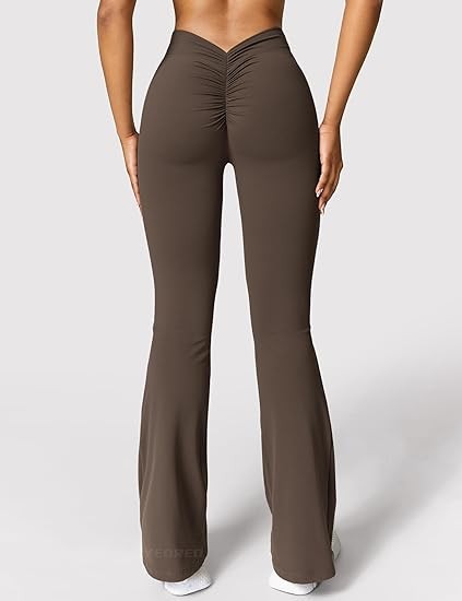 YEOREO Scrunch Flare Leggings Daze V Back Butt Lifting Wide Leg High Waist 31.5" Gym Workout Yoga Pants