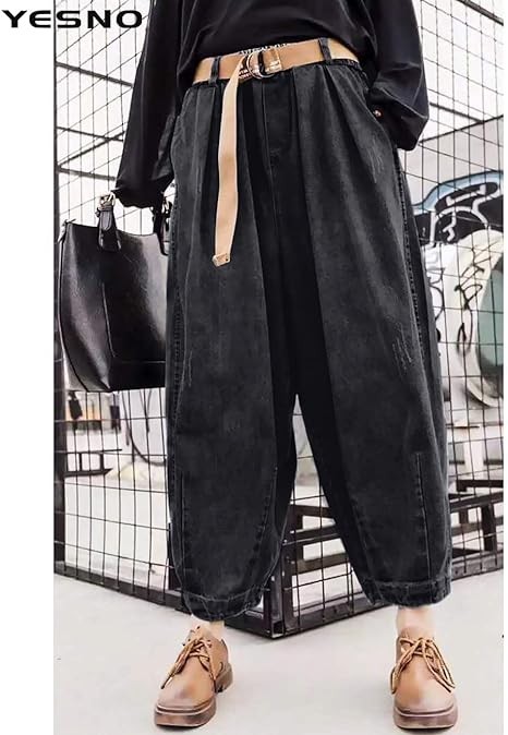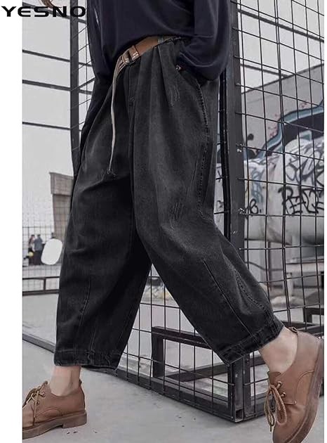 YESNO Women Casual Loose Cropped Pants Denim Bloomers Elastic Waist with Pockets PJD