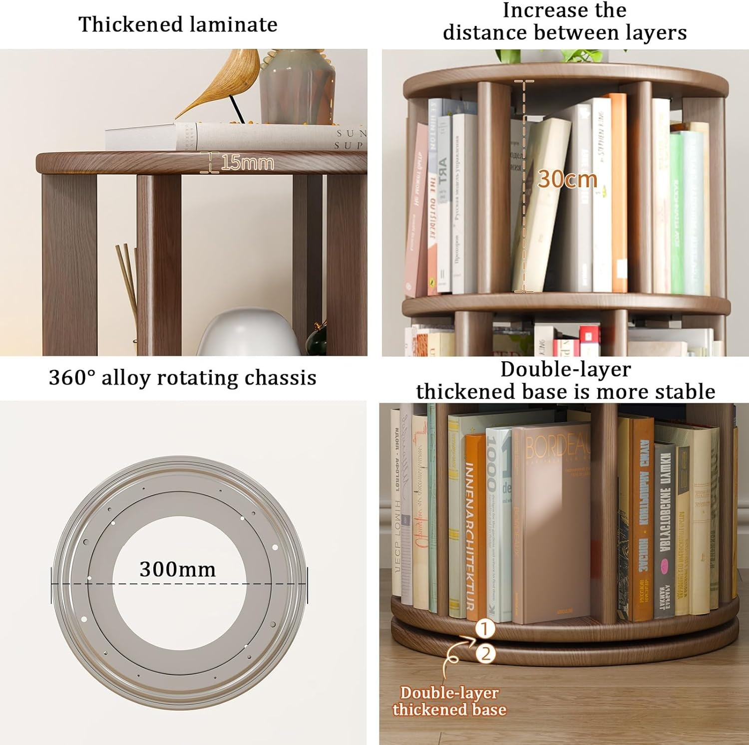 Welcome to YVYKFZD store: * The 360° rotation means it can fit snugly into corners or tight spaces, making it an ideal choice for small apartments or cozy reading nooks. It has a small footprint and makes good use of vertical space.It can be easily accommodated in just a small corner to create a reading corner. * This contemporary simple rolling bookshelf is good addition for your home. The 360° movable wheel design allows you to use it more conveniently and save your time. It can adapt to your various decoration styles so that you can use it in your living room, bedroom, hallway, balcony, etc. wherever you need it.