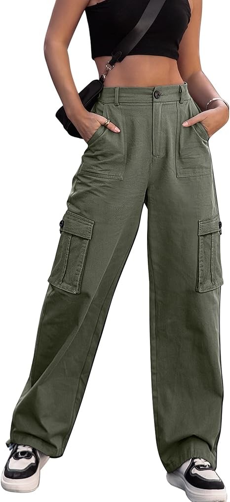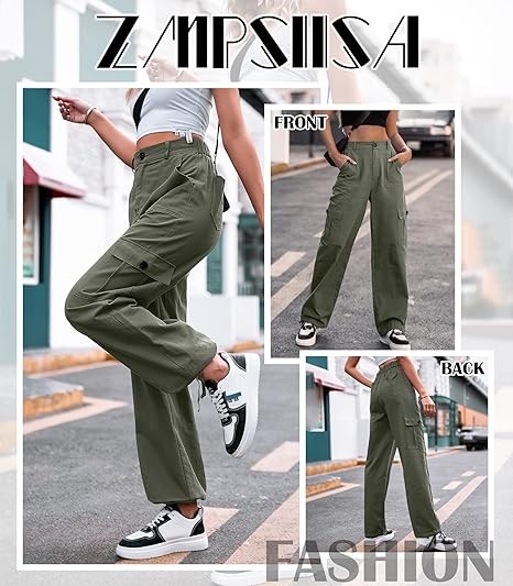 ZMPSIISA Women High Waisted Cargo Pants Wide Leg Casual Pants 6 Pockets Combat Military Trousers